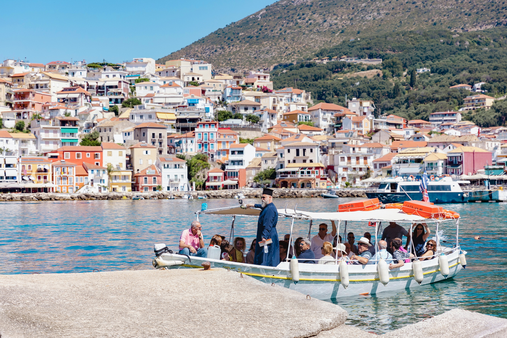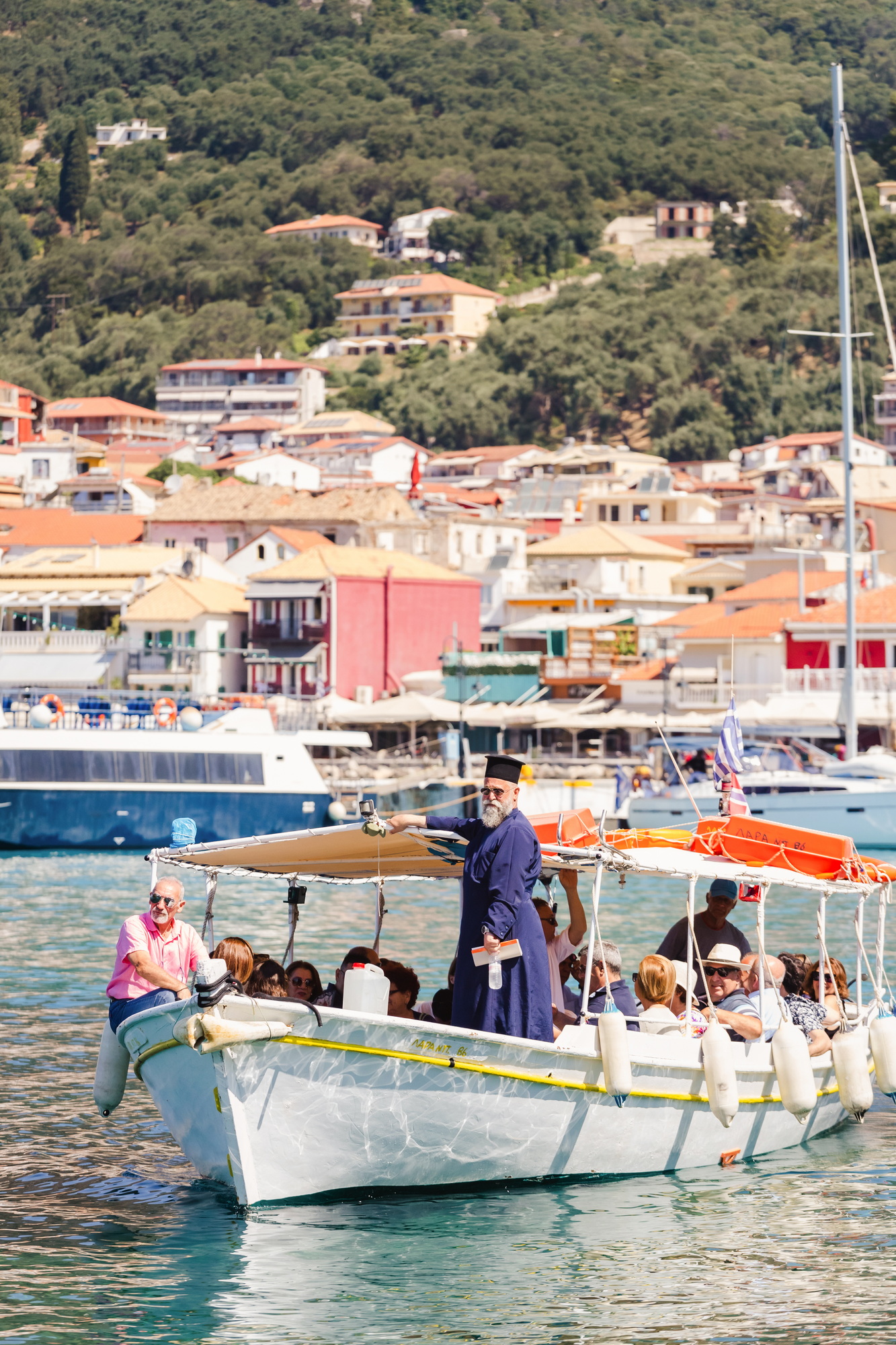 Υπάρχουν τελετές που αποκτούν τον δικό τους ρυθμό πριν καν ξεκινήσουν. Η βάπτιση του μικρού Μαξίμου στην Πάργα άρχισε ουσιαστικά πάνω στο νερό, τη στιγμή που οι καλεσμένοι επιβιβάζονταν στις μικρές βάρκες για να περάσουν απέναντι, στο νησάκι της Παναγίας. Μια μικρή διαδρομή που έμοιαζε περισσότερο με εισαγωγή σε μια καλοκαιρινή ιστορία παρά με τυπική μετάβαση σε μια τελετή.